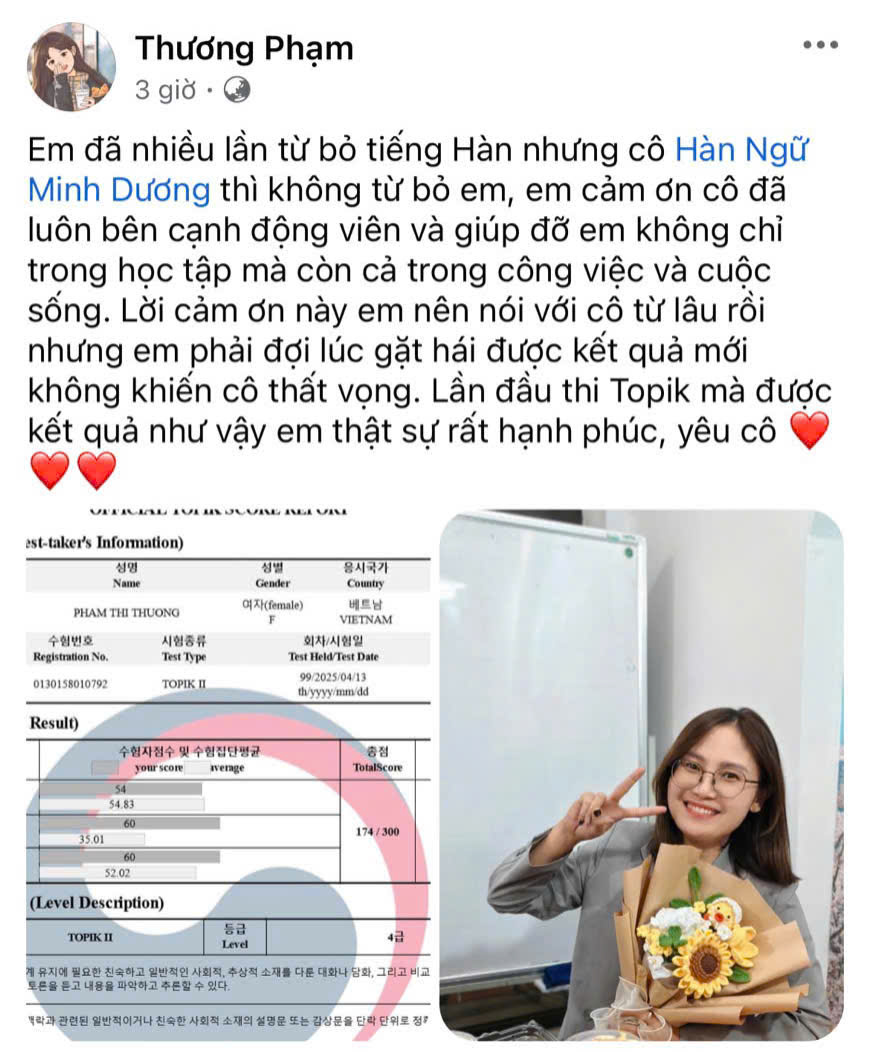 Hàn Ngữ Minh Dương tự tin là Trung tâm Ngoại ngữ chuyên đào tạo Tiếng Hàn với đội ngũ giảng viên giàu kinh nghiệm, chương trình đào tạo chuẩn chỉnh và phương pháp giảng dạy linh hoạt, dễ tiếp thu. Giúp học viên nhanh chóng tiến bộ và tự tin chinh phục các mục tiêu như giao tiếp hay chứng chỉ TOPIK. Cam kết đầu ra bằng văn bản.